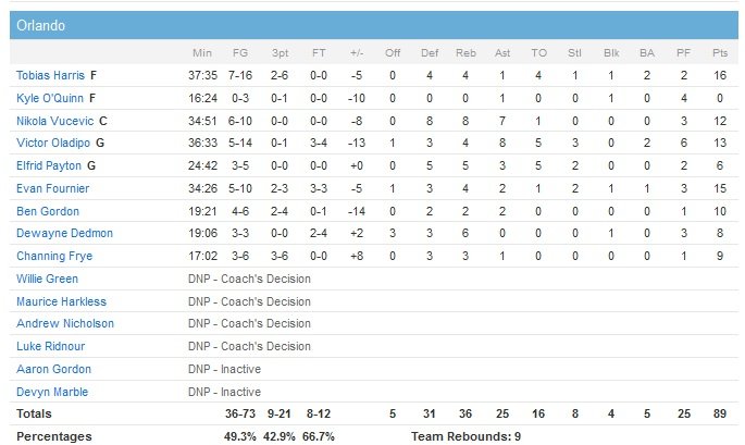Avec 29 points à 10/20 (0/5 à 3-points et 9/11 aux lancers-francs), 5 rebonds, 8 passes, 2 interceptions et 2 contres, LeBron James a dû noircir la feuille de stats pour venir à bout du Magic cette nuit, 98-89. Sans Kyrie Irving (contusion genou) et Anderson Varejao (rupture du tendon d’Achille), Cleveland a souffert et a dû s’employer pour venir à bout d’Orlando, mené par 16 points (7/16, 4 rebonds, 4 passes) de Tobias Harris et 15 points (5/10, 4 rebonds, 2 passes, 2 interceptions) d’Evan Fournier en sortie de banc.