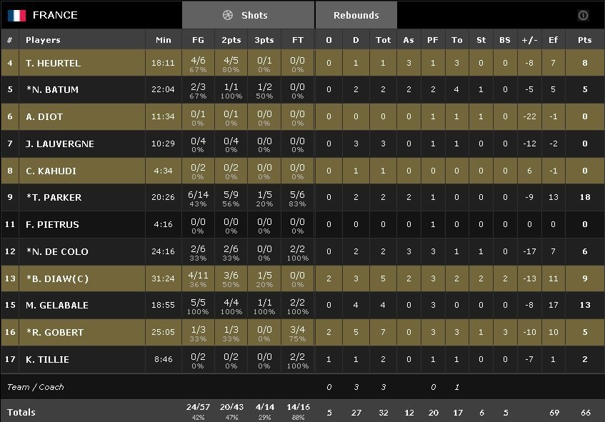 La dernière fois que la France avait perdu quatre matches d’affilée remonte à 2008, sous Michel Gomez. Pas grand chose à retenir si ce n’est le coup de chaud de Tony Parker en second quart et les 14 points de Mike Gelabale.