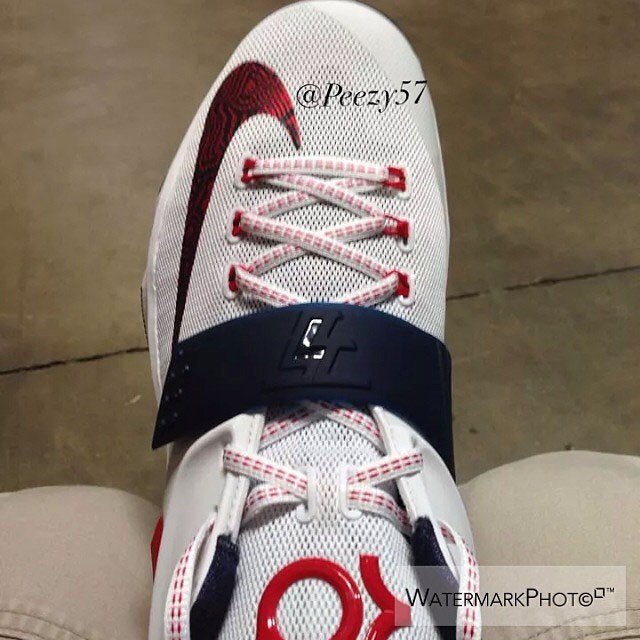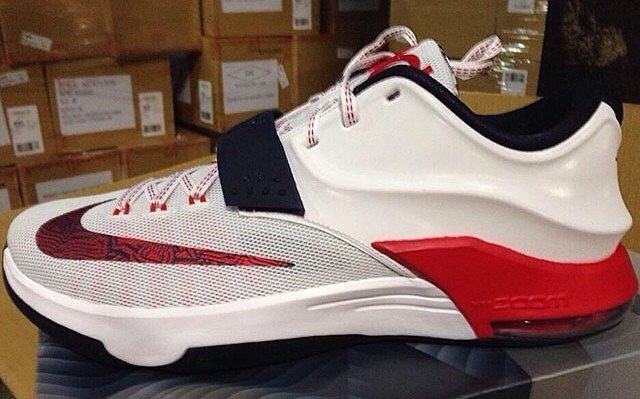 Dans moins d’un mois, le 28 juin exactement Nike sortira les KD VII au prix de 150$. Un autre modèle sortira début août, un mi-août et un autre début septembre. Voici en attendant les images du premier modèle qui sortira, une version « USA », que Kevin Durant portera sans doute lors de la coupe du monde