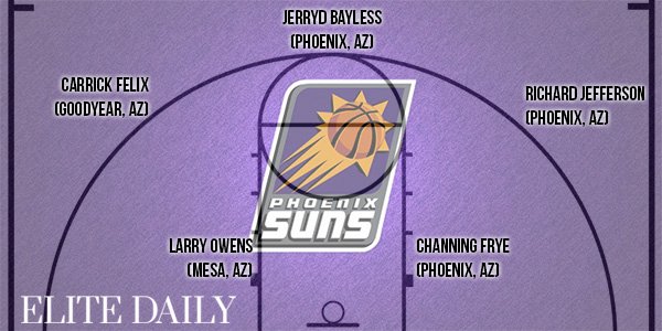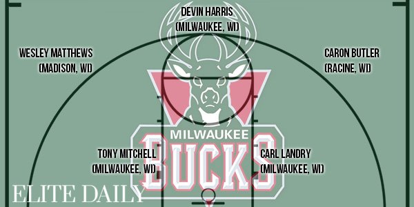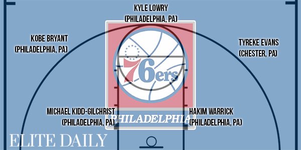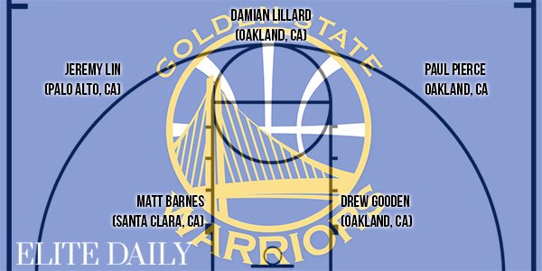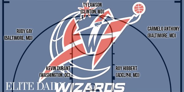 Le site Elite Daily s’est amusé à former des équipes NBA en fonction du lieu de naissance des joueurs. Ainsi pour chaque ville elle a pris des joueurs nés dans la région proche (où qui y ont grandi) et cela donne quelques très grosses équipes comme Washington, Chicago, Los Angeles…
