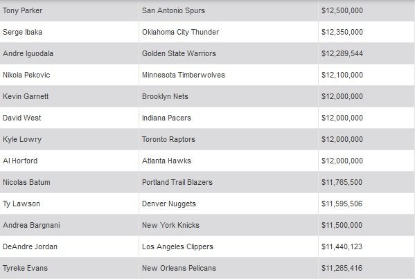 L’excellent Basketball Insiders a rassemblé ses meilleurs comptables pour nous concocter un tableau des 50 joueurs les mieux payés de la saison 2014-2015.