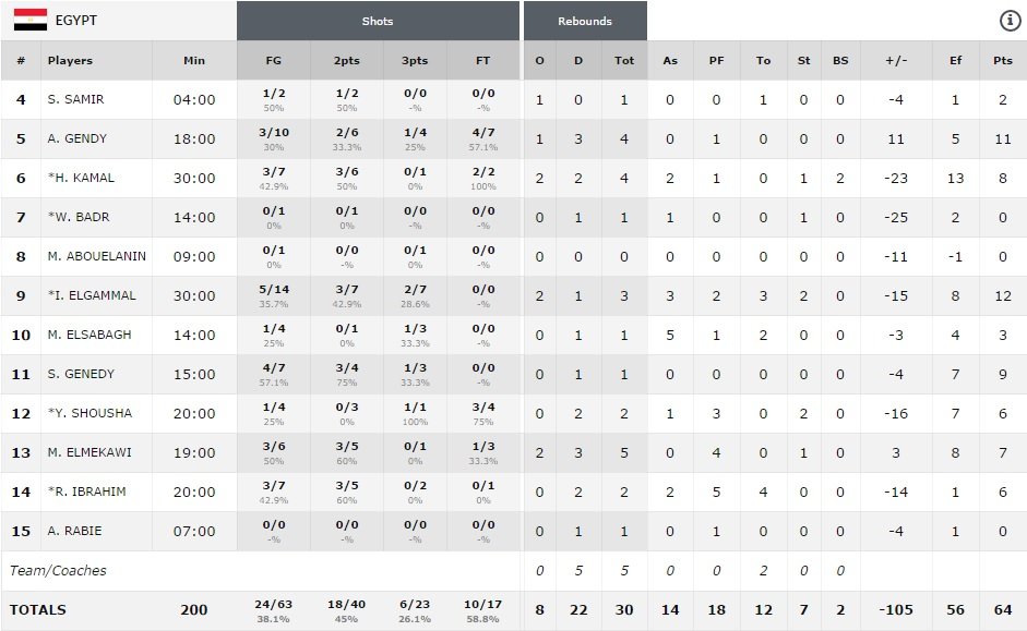 Miroslav Raduljica a compilé 13 points et 6 rebonds en seulement 13 minutes alors que Milos Teodosic est le meilleur marqueur de la rencontre avec 15 points à 4/6 à trois points en 18 minutes. Stefan Bircevic et Nikola Kalinic marquent eux 11 points. Pour l’Egypte Ibrahim El Gammal et Sherif Genedy inscrivent respectivement 12 et 11 points.