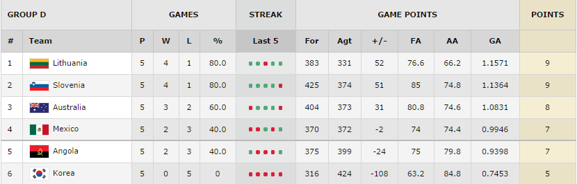 | 9. | Anderson VAREJAO (BRA) | 5 | 21.4 | 9 | 1.8 | 29 | 5.8 | 38 | 7.6 | 14.2 |