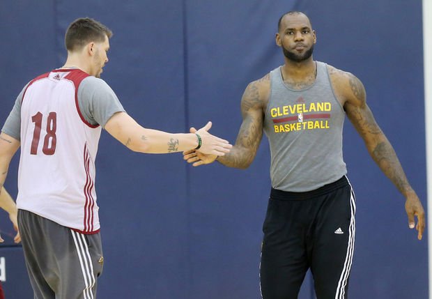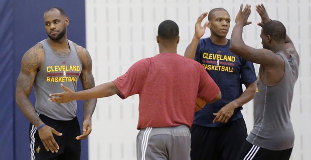 [four_fifth_last]Soit LeBron James a décidé d’assumer sa calvitie, soit il a décidé d’assumer le fait que pour son image de marque, il en porte de faux durant ses sorties officielles. Dans tous les cas, les cheveux que l’on avait pu apercevoir lors de la présentation des Nike LeBron 12 ont… disparu pour le premier entraînement à Cleveland il y a deux jours.