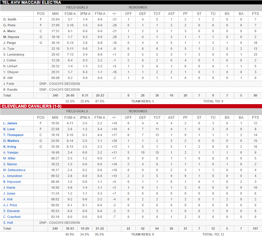 Cleveland Cavaliers – Maccabi Tel Aviv 107-80