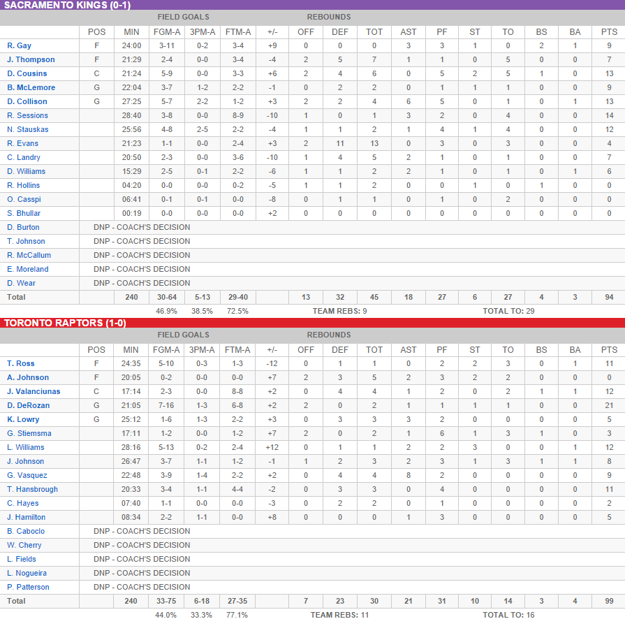 Les Raptors s’imposent eux face aux Kings avec 21 points de DeMar DeRozan