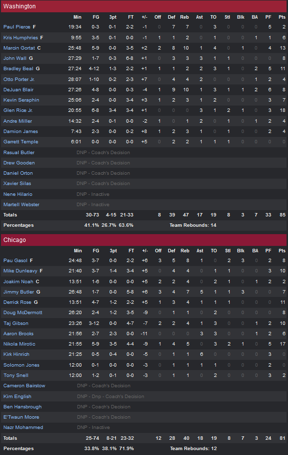 Chicago Bulls – Washington Wizards 81-85