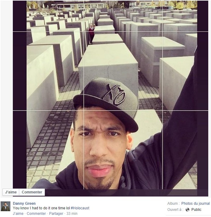 Les Spurs sont actuellement à Berlin pour y rencontrer l’Alba Berlin ce soir et Danny Green a eu l’idée très étrange de faire un selfie au Mémorial de l’Holocauste accompagné de ce commentaire