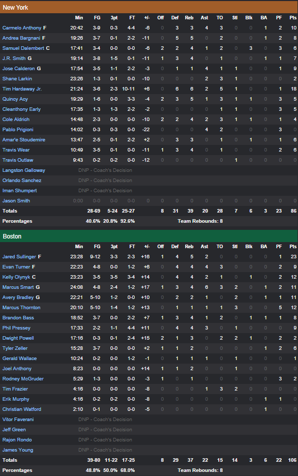 Boston Celtics – New York Knicks 106-86