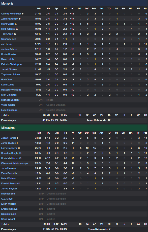 Milwaukee Bucks – Memphis Grizzlies 86-83