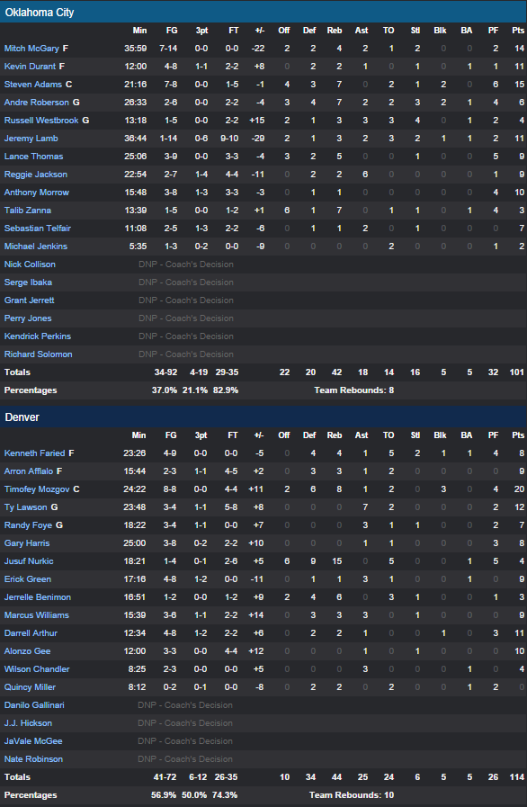 Denver Nuggets – Oklahoma City Thunder 114-101