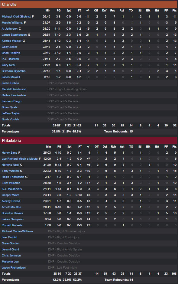 Philadelphia Sixers – Charlotte Hornets 106-92
