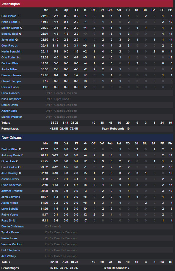New Orleans Pelicans – Washington Wizards 89-94