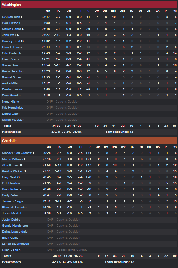 Charlotte Hornets – Washington Wizards 99-86