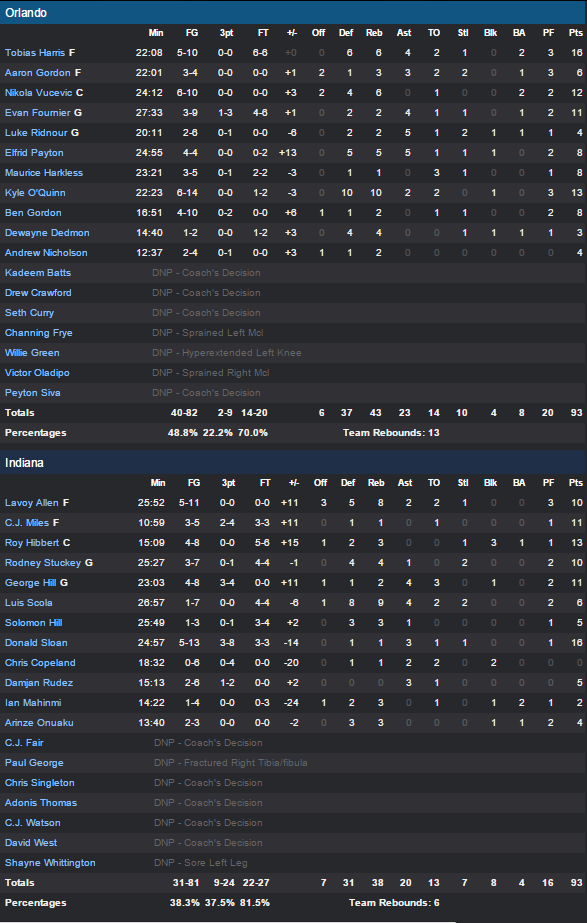 Indiana Pacers – Orlando Magic 93-96