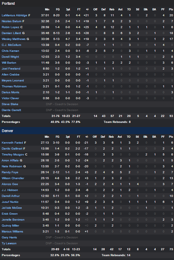 Denver Nuggets – Portland Trail Blazers 75-93