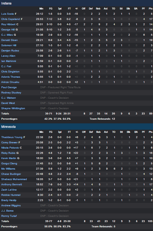 Minnesota Timberwolves – Indiana Pacers 105-89
