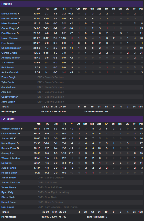 Los Angeles Lakers – Phoenix Suns 108-114