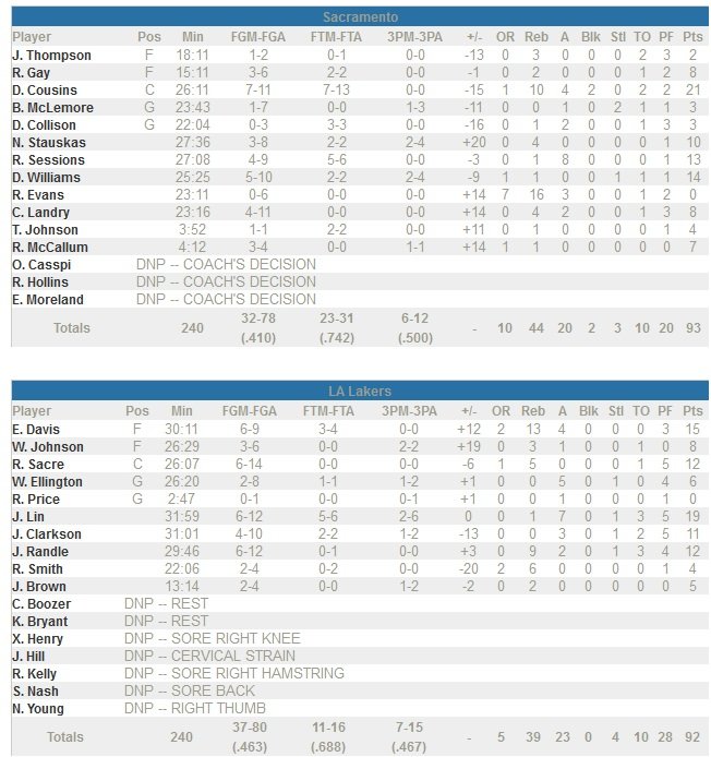 Toujours dans la Conférence Ouest, les Lakers perdent d’un petit point face aux Kings, pour qui Reggie Evans a gobé 16 rebonds ! Klay Thomspon a fait le spectacle avec 35 points dans un match très offensif face à Denver et enfin Portland remporte son duel face aux Clippers de 10 points, 90-89.