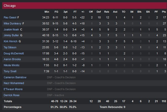 Grâce à un excellent effort collectif en l’absence de Derrick Rose et d’un Mike Dunleavy (9/15 et 5/8 à 3-points) en feu dans un troisième quart-temps décisif (12 de ses 27 points dans la période), les Bulls obtiennent une quatrième victoire consécutive 118-115 sur les 76ers, qui n’ont de leur côté pas encore gagné cette saison (0V-6D, pire début depuis 1996-97).
