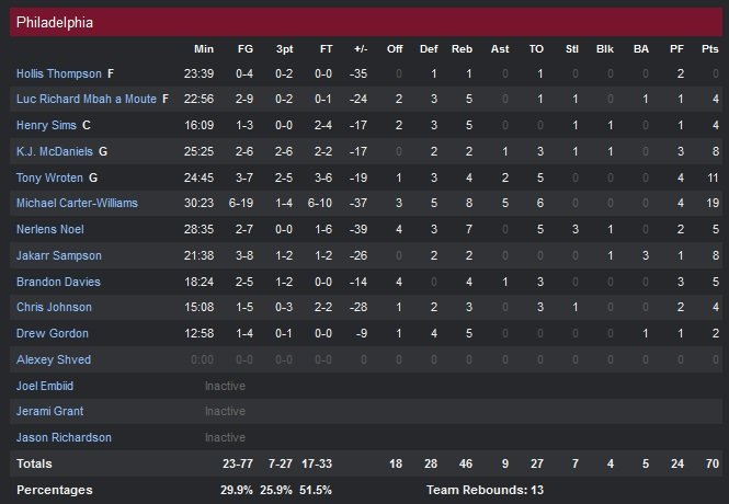 Philadelphie prend 53 points à Dallas
