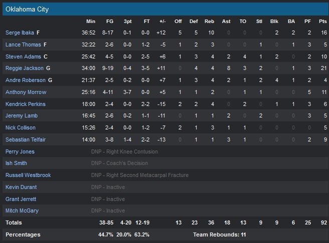 Brooklyn Nets vs Oklahoma City Thunder 94-92
