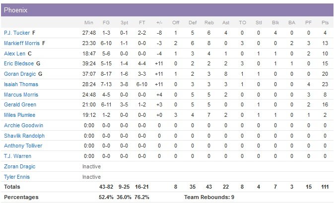 Sorti du banc, Isaiah Thomas a trouvé sa place sur le parquet des Hornets cette nuit et termine meilleur marqueur de Phoenix avec 23 points dont deux lancers-francs clutchs dans la dernière minute du match qui a aidé son équipe à se remettre d’un déficit de 17 points (7/13, 3 rebonds, 3 passes). Son association avec Goran Dragic (20 points à 8/17, 8 passes), de retour de blessure (dos) après deux matchs d’absence a payé et les Suns effacent une série de 6 défaites en s’imposant 111-106.