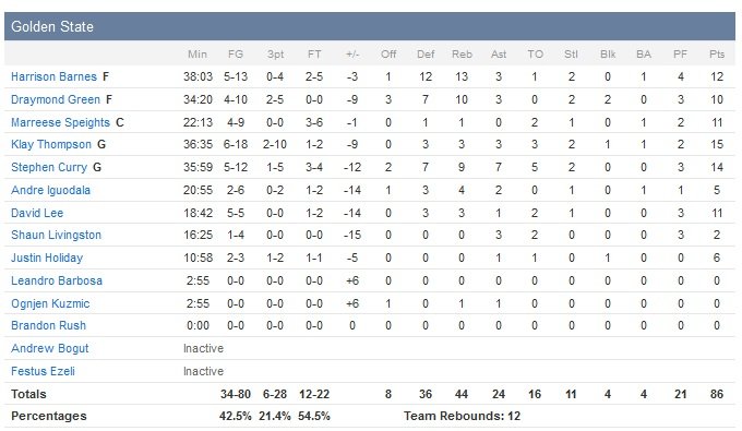 Suite à un dunk de DeAndre Jordan (14 points 12 rebonds) pour ouvrir le bal après 15 secondes de jeu, les Clippers seront privés de paniers dans le jeu (4 lancers-francs seulement) jusqu’à ce qu’il ne reste que 3″18 à jouer dans le premier quart-temps. Les Warriors, qui prennent donc logiquement une rapide avance, insistent d’abord sur les shoots extérieurs par Stephen Curry (14 points à 5/12, 9 rebonds mais 5 ballons perdus) et Draymond Green puis envoient le ballon dans la peinture à l’image du dunk de David Lee qui porte le score à 16-6 après 8 minutes de jeu. L’entrée de Jamal Crawford fait le plus grand bien à Los Angeles (qui shoote à seulement 28% en première mi-temps). Le shooteur fou inscrit 7 points en deux minutes et égalise à 18 partout sur un 3-points avant que Harrison Barnes ne redonne un court avantage à Golden State, 20-18.