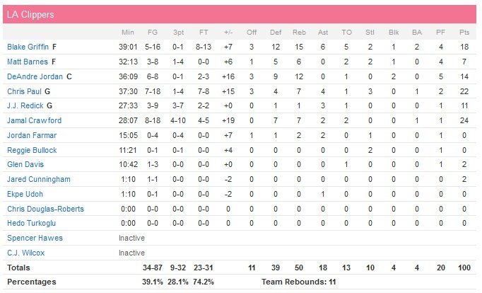 Un nouveau run (11-2 en 3″11) va permettre aux Clippers de passer la barre des 10 points d’avance sur un layup tout en toucher signé Crawford en début de quatrième quart-temps. Golden State shoote à 2/13 (contre 7/11) en début de période et artille beaucoup de loin sans succès. Les Warriors comptent bientôt 16 points de retard puis 20 après un nouveau 3-points de Crawford, qu achève définitivement les visiteurs à moins de trois minutes de la fin du match. Tous les remplaçants font leur entrée sur le parquet alors que Griffin doit encore shooter deux lancers-francs à 1″10 du buzzer final.