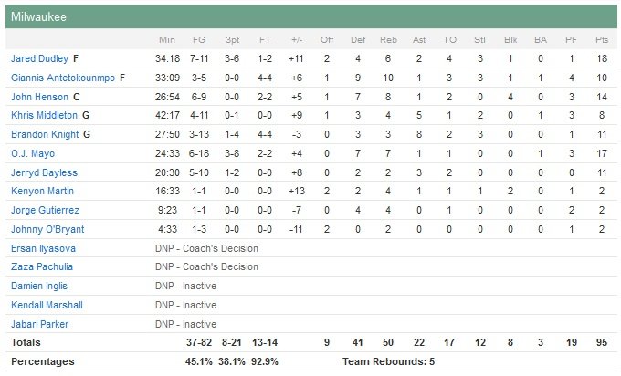 Troisième victoire de rang pour Milwaukee et troisième défaite consécutive pour Portland cette nuit, 95-88. Jared Dudley (18 points) et O.J. Mayo (17 points) mènent une troupe de 6 joueurs à au moins 10 points pour les Bucks, qui remportent leur deuxième match d’affilée à l’extérieur.