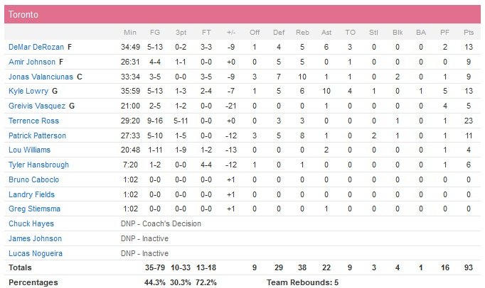 Anderson enchaîne 5 points durant un 11-2 en faveur des Nets, qui prennent 10 points d’avance 69-59 à 4″22 de la fin du troisième quart. Toronto répond avec un 10-2 (5 points de Ross) et Brooklyn a l’avantage 76-72 pour débuter le quatrième. Anderson continue son petit show avec trois lancers et un dunk. Tyler Hansbrough répond avec deux lancers mais Jack provoque une faute alors qu’il tente un 3-points (3/3) et replace les Nets, 84-74, à 10″16 de la fin du match. Patrick Patterson va réduire l’écart à 91-82 sur un layup (8″18) mais Jack puis Mason Plumlee sur un jump shot et deux lancers-francs poursuivent les efforts de Brooklyn alors que Bogdanovic vient la libérer définitivement en rentrant deux 3-points d’affilée, 101-82.