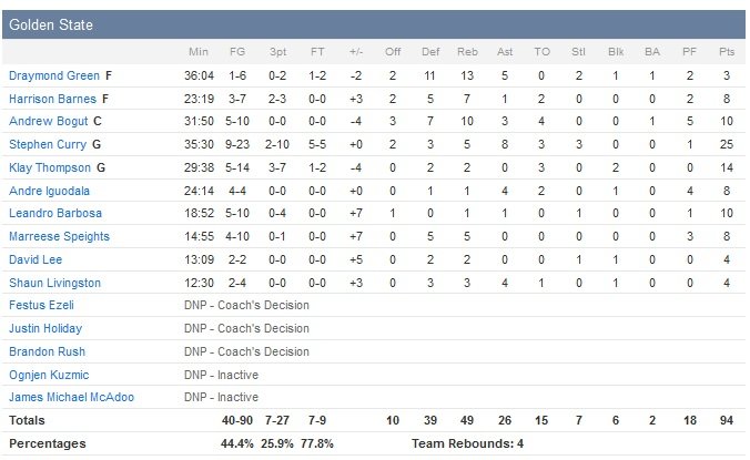 Andre Iguodala (8 points à 4/4 et 4 passes en 24 minutes) et Leandro Barbosa (10 points à 5/10 en 18 minutes) ont été les leaders de la second unit décisive pour les Warriors cette nuit dans le Minnesota (victoire 94-91) alors que Klay Thompson se charge du 3-points clutch en fin de match.
