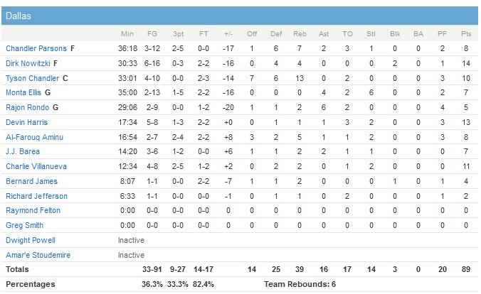 Une sixième victoire en sept matchs parfaite en attendant les arrivées des nouveaux joueurs après la deadline hier. Sont ainsi attendus Enes Kanter, D.J. Augustin (coéquipier de Durant à l’université de Texas), Kyle Singler et Steve Novak. Oklahoma City est désormais 8e à l’Ouest en compagnie de Phoenix avec un bilan de 29 victoires pour 14 défaites. En face Dirk Nowitzki termine meilleur marqueur de son équipe avec 14 points à 6/16 et Dallas a passé une sale soirée aux tirs avec un maigre 36.3% de réussite, son pire bilan dans un match cette saison. Le retour de Rajon Rondo après 6 matchs d’absence ne fait pas de miracle (5 points et 6 passes en 30 minutes), pas plus que le petit double-double de Tyson Chandler (10 points et 13 rebonds). L’équipe de Rick Carlisle a été atomisé au rebond avec un déficit de 23 prises, 62-39.