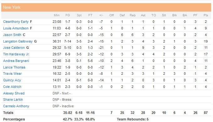 Tim Hardaway Jr, désormais deuxième meilleur marqueur ex-aequo de l’équipe de Derek Fisher à égalité avec Galloway (11.1 points par match) signe 17 points. Miami domine largement au rebond lors des deux premiers quarts-temps (27-14) et le 4/4 de Napier (dont 2/2 à 3-points) en première mi-temps permettent au Heat (qui restait sur 4 défaites en 5 matchs) de mener de 10 points à la pause, 58-48. Les Knicks, auteurs de 20 ballons perdus (Miami fait encore pire avec 21 turnovers), encaisseront ensuite un 53-29 en seconde mi-temps.