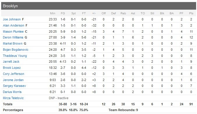 Dominants dans la raquette avec un bon Michael Kidd-Gilchrist (7e match consécutif à au moins 10 points avec 10 points et 13 rebonds cette nuit), les Hornets prennent l’avantage 49-38 au rebond et prendront jusqu’à 32 points d’avance. Pourtant vainqueurs face à Dallas et Golden State lors de leurs deux matchs précédents, les Nets n’avaient pas de solution cette nuit et leur meilleur scoreur Deron Williams ne compte que 12 points. Meilleure équipe NBA au pourcentage de réussite en premier quart-temps, Brooklyn encaisse un violent 35-15 dans les 12 premières minutes. Cody Zeller se fait plaisir dans la période avec 10 points. Les Hornets passent un 11-0 à leurs adversaires pour mener 13-2 puis enfonce un peu plus leurs adversaires sur un 13-0 qui porte le score à 29-6. Après un dunk de Jefferson, les Hornets shootent alors à 13/15…