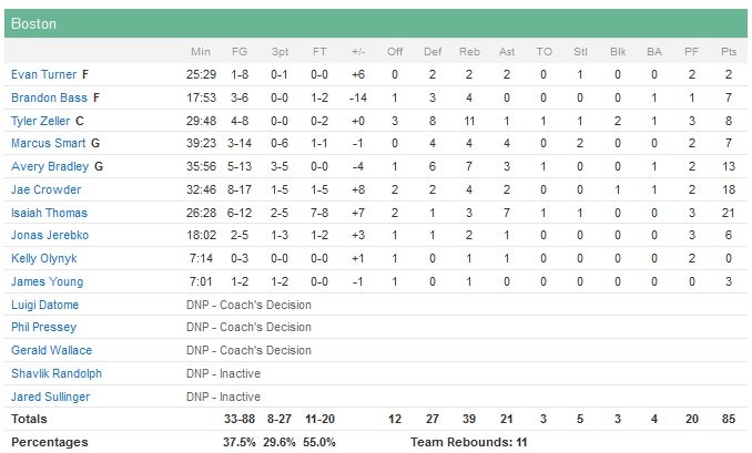 Fin de match cruelle pour le Jazz en visite à Boston cette nuit. Tyler Zeller a inscrit un layup avec la planche au buzzer pour offrir la victoire à son équipe, 85-84. Isaiah Thomas termine meilleur marqueur de l’équipe avec 21 points et Jae Crowder et Avery Bradley suivent avec respectivement 18 points et 13 points et 7 rebonds. Les Celtics se remettent ainsi d’une défaite de 31 points à Cleveland la nuit précédente.