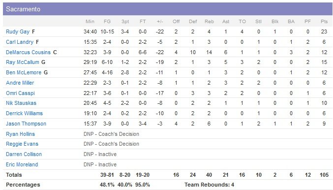 Après avoir laissé au repos trois de leurs titulaires dans une défaite contre les Sixers qui avait mis fin à une série de 6 victoires, les Hawks ont repris leurs bonnes vieilles habitudes et ont infligé une 4e défaite de rang à Sacramento (21 passes, 48.1% aux tirs) , mené par les 23 points de Rudy Gay. Atlanta termine à un impressionnant 20/36 à 3-points (personne n’a fait mieux cette saison) et bat le record de passes décisives des Clippers (41) établi en janvier.
