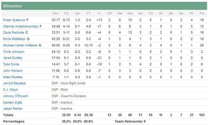 L’arrière signe 25 points à 8/17, 6 rebonds et 6 passes en sortie de banc alors que l’Argentin termine à 17 points et 15 rebonds. Michael Carter-Williams a lui inscrit 28 points pour Milwaukee, épaulé par les bons matchs d’Ersan Ilyasova (19 points et 10 rebonds) et Zaza Pachulia (16 points à 12 rebonds) à l’intérieur. Indiana n’a jamais mené en première mi-temps et compte 12 points de retard au terme du premier quart-temps. Auteur d’un gros troisième quart, les joueurs de Frank Vogel se dirigent vers le quatrième quart-temps avec une avance de 8 points. Ils prendront jusqu’à 10 points d’avance dans un match qui a vu 8 changements d’avantage et 8 égalités. Le banc des locaux a fait la différence cette nuit avec un avantage de 52 points à 10. Malgré leurs 20 ballons perdus, les Pacers se rattrapent en exécutant bien en attaque (24 passes contre 18 et un pourcentage de réussite de 49.4% dont un 9/22 à 3-points contre un 38.5% et 4/14 de loin pour les hommes de Jason Kidd).