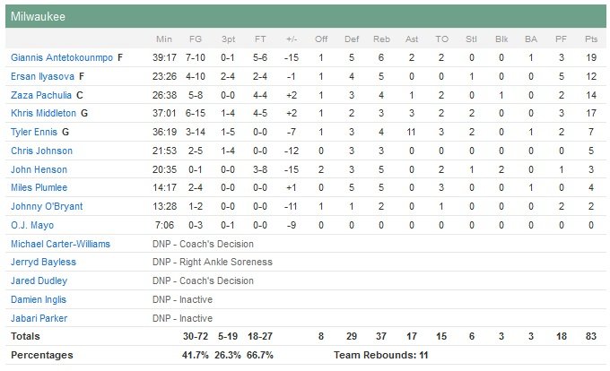 Le tournant du match a eu lieu entre le deuxième et le troisième quart-temps, durant lesquels les Grizzlies ont passé un 56-41 à leurs adversaires. Avant cela les Bucks (8e défaite consécutive à l’extérieur) se construisent une avance de 10 points en shootant à 7/10 pour commencer le match. Rapidement Memphis reprend le dessus et compte déjà 13 points d’avance dans le deuxième quart pour passer devant 49-42 à la pause. L’écart atteindra les 17 points dans le troisième puis les 19 points dans le quatrième. À noter que Marc Gasol a dépassé son frère dans l’histoire de la franchise au nombre de minutes jouées en carrière. Michael Carter-Williams était lui absent en raison d’une cheville douloureuse.