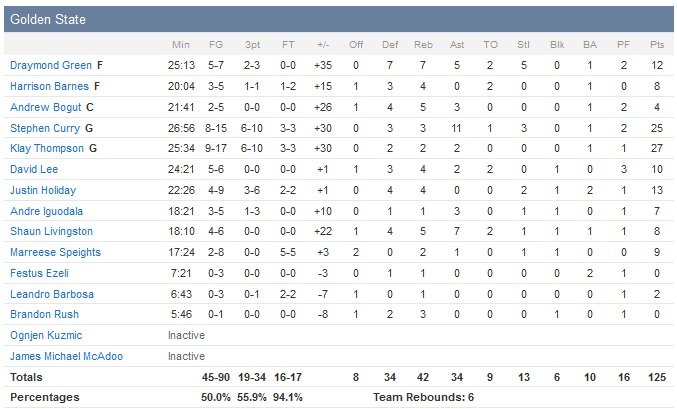 Une 8e victoire consécutive à domicile pour la meilleure équipe NBA dans le domaine avec 29 victoires et 2 défaites cette saison à l’Oracle Arena. Klay Thomspon ajoute lui 27 points et pas moins de 6 trois-points et les Splash Brothers comptent déjà 21 points d’avance à la pause (73-52 sur un buzzer à 3-points de Curry), après avoir marqué… 47 points dans le deuxième quart-temps. Andrea Bargnani termine meilleur marqueur de New York avec 18 points. Les Warriors revenaient d’eux d’une défaite (les titulaires au repos) à Denver mais les hommes de Steve Kerr ont fait le travail pour le premier d’une série de 6 matchs à domicile. Draymond Green signe 12 points, 7 rebonds et 5 passes pour la 9e victoire en 12 matchs des Warriors sur les Knicks.