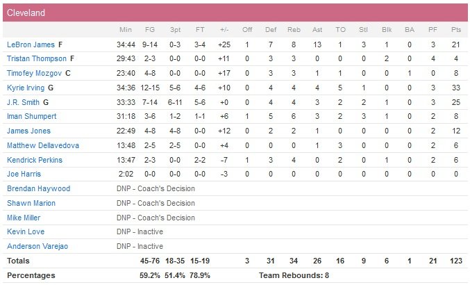 Irving, qui avait inscrit 57 points face aux Spurs jeudi dernier, reste efficace en seconde mi-temps avec 9 points à 4/4 alors que James joue au facilitateur, distribuant 5 passes. Le Magic se rapprochera au maximum à 112-103 dans le quatrième quart-temps mais un shoot de James (qui signe son 18e double-double de la saison) puis un 3-points de James Jones mettent tout le monde d’accord. À noter que Kevin Love avait été laissé au repos par David Blatt. L’intérieur souffre de douleurs au dos dont il espère se débarrasser avant le début des playoffs.