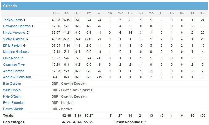 Orlando perd de son côté un 4e match de rang malgré 25 points de Victor Oladipo, 24 de Tobias Harris et un nouveau double-double de Nikola Vucevic avec 22 points et 15 rebonds. Orlando contrôle le tempo du début de rencontre mais le match prend un tournant décisif dans le deuxième quart-temps, remporté 40-27 par les visiteurs, qui infligent un 11-0 à leurs adversaires. Irving plante 16 points dans le troisième quart-temps, dont deux des six trois-points de son équipe dans la période.