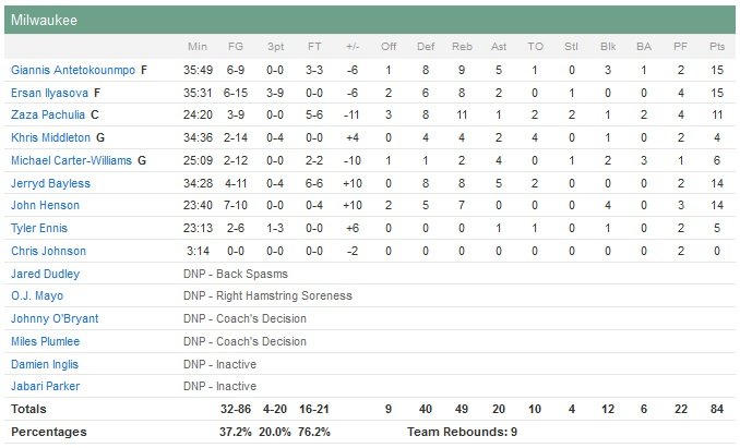 Quincy Pondexter rentre 5 trois-points dans le match et termine à 18 points pendant qu’Omer Asik signe 16 points et 11 rebonds mais le banc des Pelicans devra attendre qu’il reste 1″43 à jouer (panier d’Alexis Ajinça) dans le troisième quart-temps pour inscrire ses premiers points du match. Norris Cole enchaîne ensuite avec un 3-points et New Orleans conclut son troisième quart sur un 7-0 pour mener 70-62. L’équipe retombe dans ses travers avec un 4/20 dans le dernier quart-temps, laissant Milwaukee égaliser à 80 partout sur une claquette de Zaza Pachulia à 2″17. Eric Gordon, jusque-là pas en réussite, répond avec un 3-points clutch. Davis rentre ensuite un autre shoot important à 5m du panier, donnant trois points d’avance aux siens 85-82 à 1″07. Ce petit écart tiendra finalement jusqu’à la fin, les Pelicans retenant leur souffle sur une tentative lointaine d’Ersan Ilyasova alors que la sirène retentit.