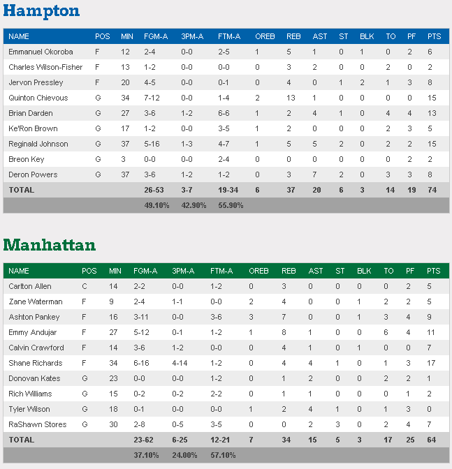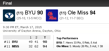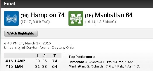 Cette nuit il y avait les deux premiers matchs du First Four de la March Madness et ce sont Hampton et Ole Miss qui accèdent au Second Round. Hampton, vainqueur de Manhattan 74-64 affrontera Kentucky, grand favori pour le titre. Dans l’autre match entre BYU et Ole Miss, ces derniers ont compté 17 points de retard à la pause, mais dans le sillage de Stefan Moody (26 points à 5/9 à trois points), ils ont totalement inversé la tendance. Ils affronteront au Second Round Xavier.