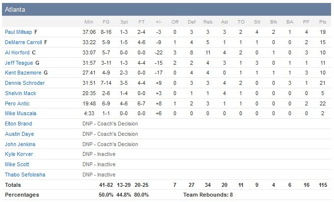 Pou l’épauler Dion Waiters marque 26 points et Anthony Morrow score 12 de ses 21 points dans le quatrième quart-temps. Sans oublier Steven Adams, précieux en l’absence de Serge Ibaka et qui signe 12 points et 16 rebonds. Un match rassurant quelques heures après l’annonce faite d’une saison probablement terminée pour Kevin Durant par le Thunder. Défaits chez les Warriors, mercredi, les Hawks ont n’ont pas tenu le coup dans les 12 dernières minutes du match et sont menés par les 22 points de Pero Antic (record en carrière) et les 21 points de Dennis Schröder, tous deux remplaçants. Atlanta a shooté à 58% en première mi-temps (51% pour Oklahoma City) et comptait 7 points d’avance à la pause grâce à 18 points d’Antic et 12 de Schröder. Westbrook lui, a inscrit 19 points, 7 passes et 6 rebonds lors des deux premiers quarts-temps.