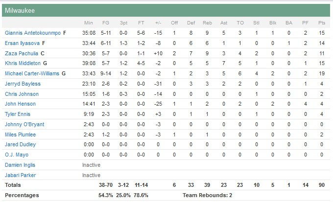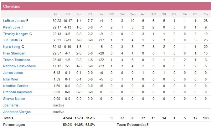 Malmenés en première mi-temps face à une rude équipe de Milwaukee, les Cavaliers ont finalement enchaîné une troisième victoire (108-90) au Bradley Center grâce à un très bon LeBron James (28 points à 10/17, 10 rebonds, 6 passes et 5 interceptions) en seconde mi-temps, un J.R. Smith totalement en feu à 3-points (7/9) et à un Kyrie Irving qui ajoute 20 points à 9/19 et 7 passes.