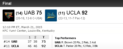 March MadnessNCAA March Madness: Villanova au tapis; Kentucky, UCLA et North Carolina poursuivent leur route 22 mars 2015, 09:29 Christophe Brouet Envie de vivre la NBA au plus près, partez vivre une expérience inoubliable avec notre agence de voyages Trip Double. C'est par ici ! Pages : 1 2