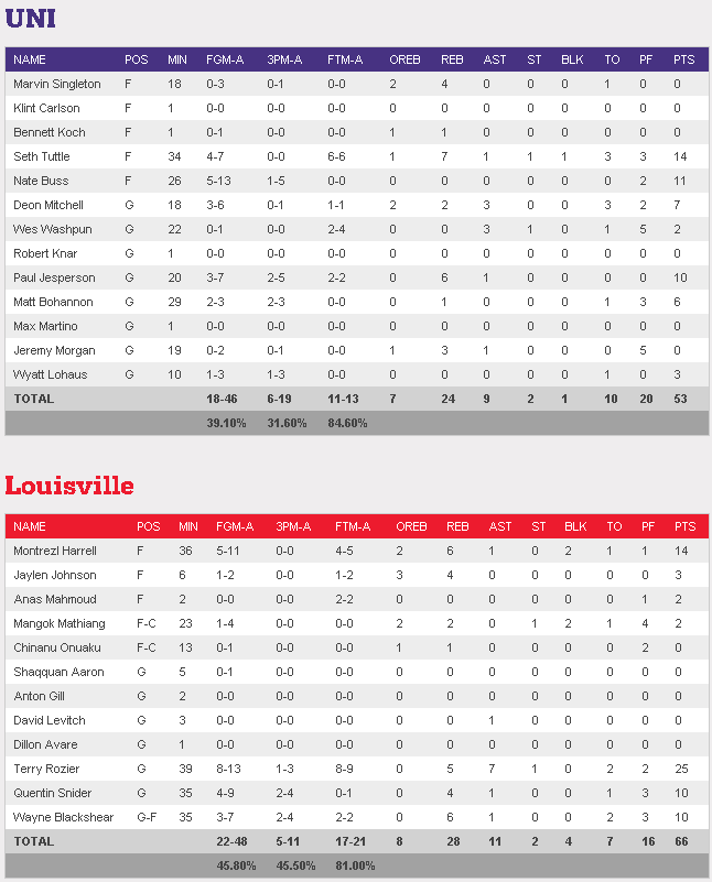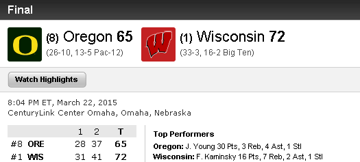 Ca passe en revanche pour les autres favoris Duke, Louisville, Wisconsin et Gonzaga.