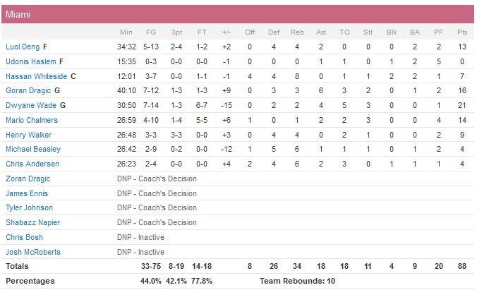 Le match à égalité 53 partout, Miami était bien parti pour l’emporter avec un 19-6 en milieu de troisième quart qui plaçait les visiteurs devant 72-59 sur un 3-points d’Henry Walker à 3″22 de la fin de la période. Miami passe un 28-16 à ses adversaires (qui ne shootent qu’à 7/26) dans ce troisième quart. Ersan Ilyasova et Giannis Antetokounmpo marquent chacun 16 points pour les Bucks, qui gagnent pour la 4e fois en 18 matchs depuis le transfert de leur meneur Brandon Knight à Phoenix. Dwyane Wade signe lui 21 points et Goran Dragic 16 et Miami est devant 79-65 avant de jouer le quatrième quart, puis 85-71 suite à une interception et un layup de la star du Heat à 6″33.