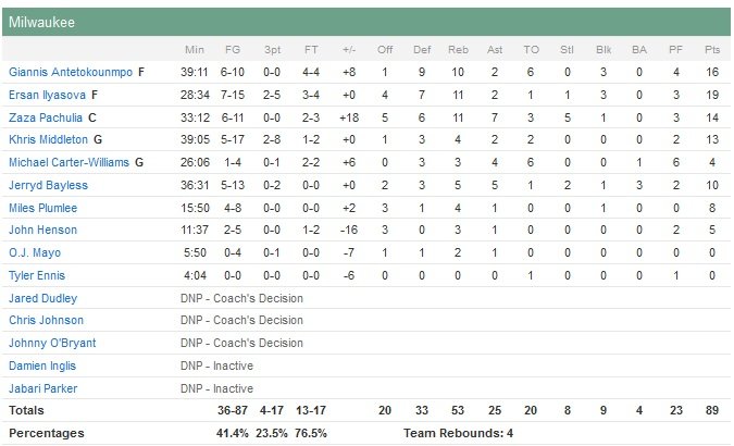 Milwaukee va alors enchaîner sur un 14-0 pour revenir à égalité 85 partout sur un layup de Pachulia à 1″20. Wade redonne l’avantage à Miami sur la possession suivante (87-85) puis rentre un lancer sur deux à 17.5 secondes de la fin pour donner trois points d’avance aux siens, 88-85. Ilyasova fait de même sur la ligne (88-86) à 12.8 secondes. Jerryd Bayless obtient ensuite un rebond décisif mais rate son layup dans le trafic avant que Pachulia ne sauve le ballon in extremis pour un Khris Middleton (13 points) qui plante le game winner à 3-points qui crucifie Erik Spoelstra et toute son équipe.